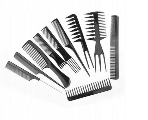 Zestaw grzebieni fryzjerskich 10 sztuk z etui