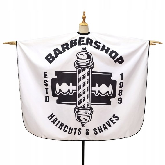 Peleryna fryzjerska biała z motywem barberskim VellePro