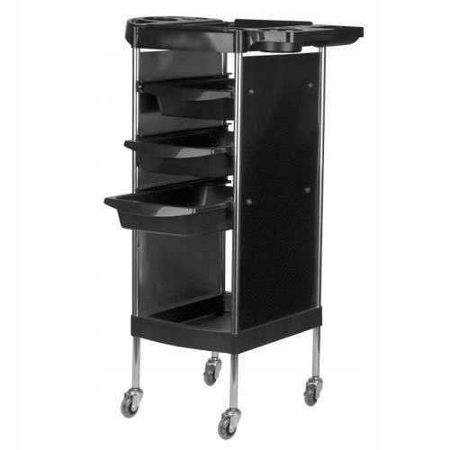 Trzy szuflady w tym wózku zapewnia dużo miejsca na przechowywanie narzędzi, kosmetyków i akcesoriów fryzjerskich. Dzięki temu, że szuflady są łatwo dostępne, możesz szybko znaleźć potrzebne przedmioty bez konieczności szukania po całym salonie.